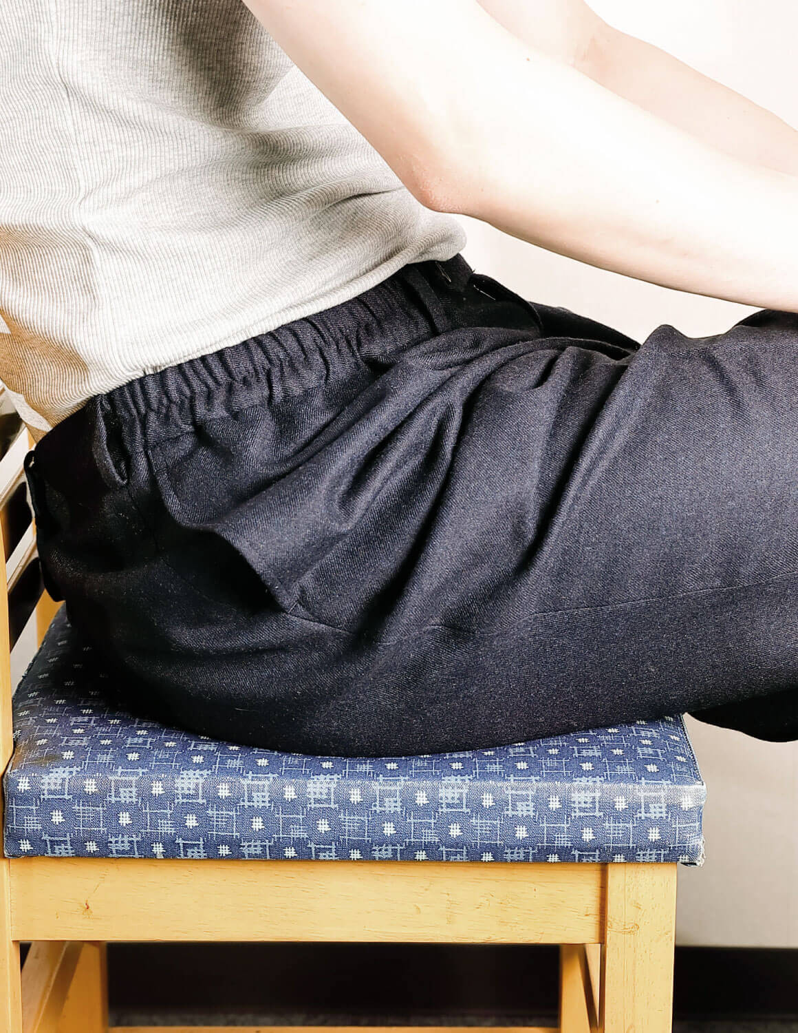 装具を装着する体の右側のウエストにゴムを入れて生地に余裕をもたせることで、時間が経っても快適に過ごしていただくことが可能になりました。